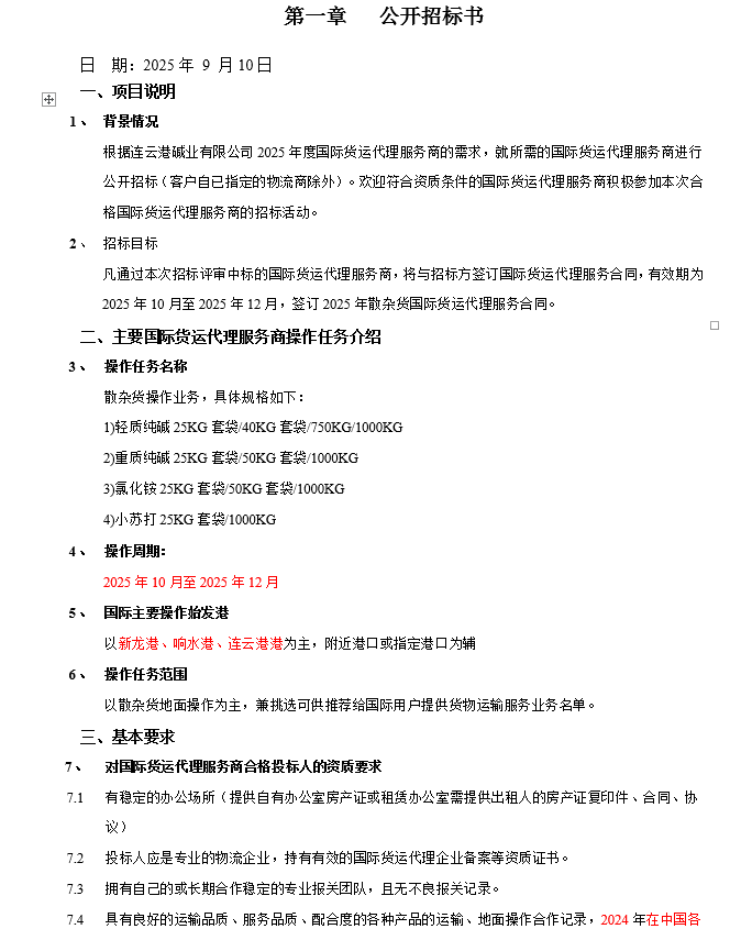 連云港堿業(yè)有限公司散雜貨國際貨運代理服務(wù)商項目招標公告